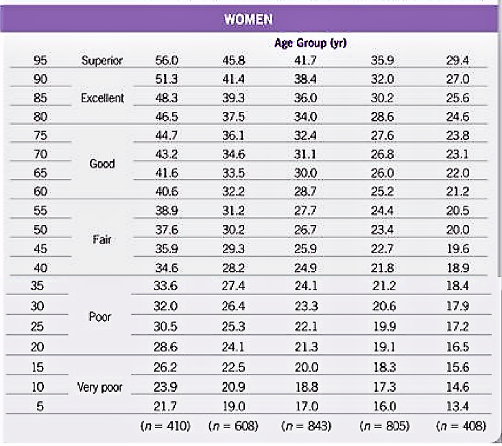 测得了本人的VO2max,要有比较的标准才能知道是好是坏。以下是美国运动医学学会(ACSM)提供的评价标准。